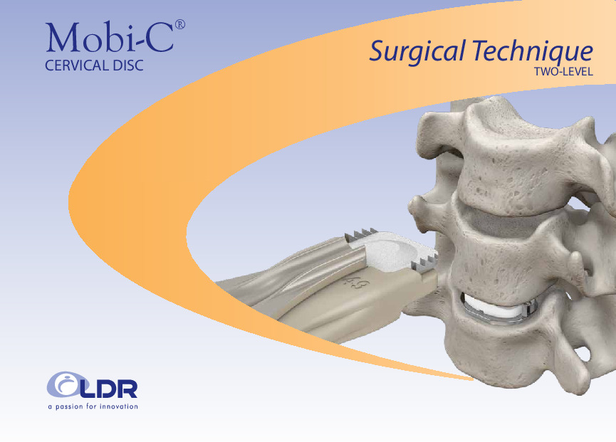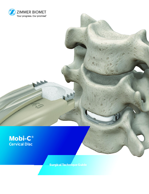 The Mobi-C Cervical artificial disc now owned by High Ridge Medical is a metal-on-poly disc design with endplates composed of Cobalt-Chrome-Molybenum with hydroxyapatite and titanium sprayed plasma endplate coating. It features a mobile central core that allows for coupled motion. The spike and tooth design allows for bone sparing.