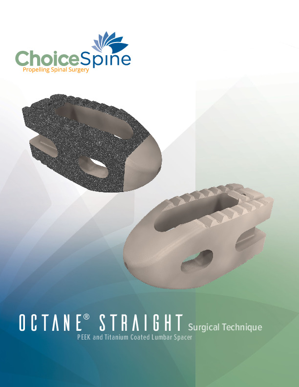 The OCTANE PEEK Straight PC by Choice Spine is a PEEK and Plasma Sprayed titanium coated PEEK straight spacer for use in the oblique TLIF approach or bilateral PLIF approach.