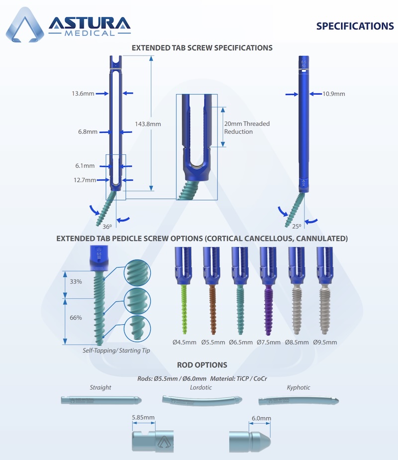 Features: K-Wire Cannulated , Polyaxial Head , Percutaneous Screw , Extended Reduction Head Tabs