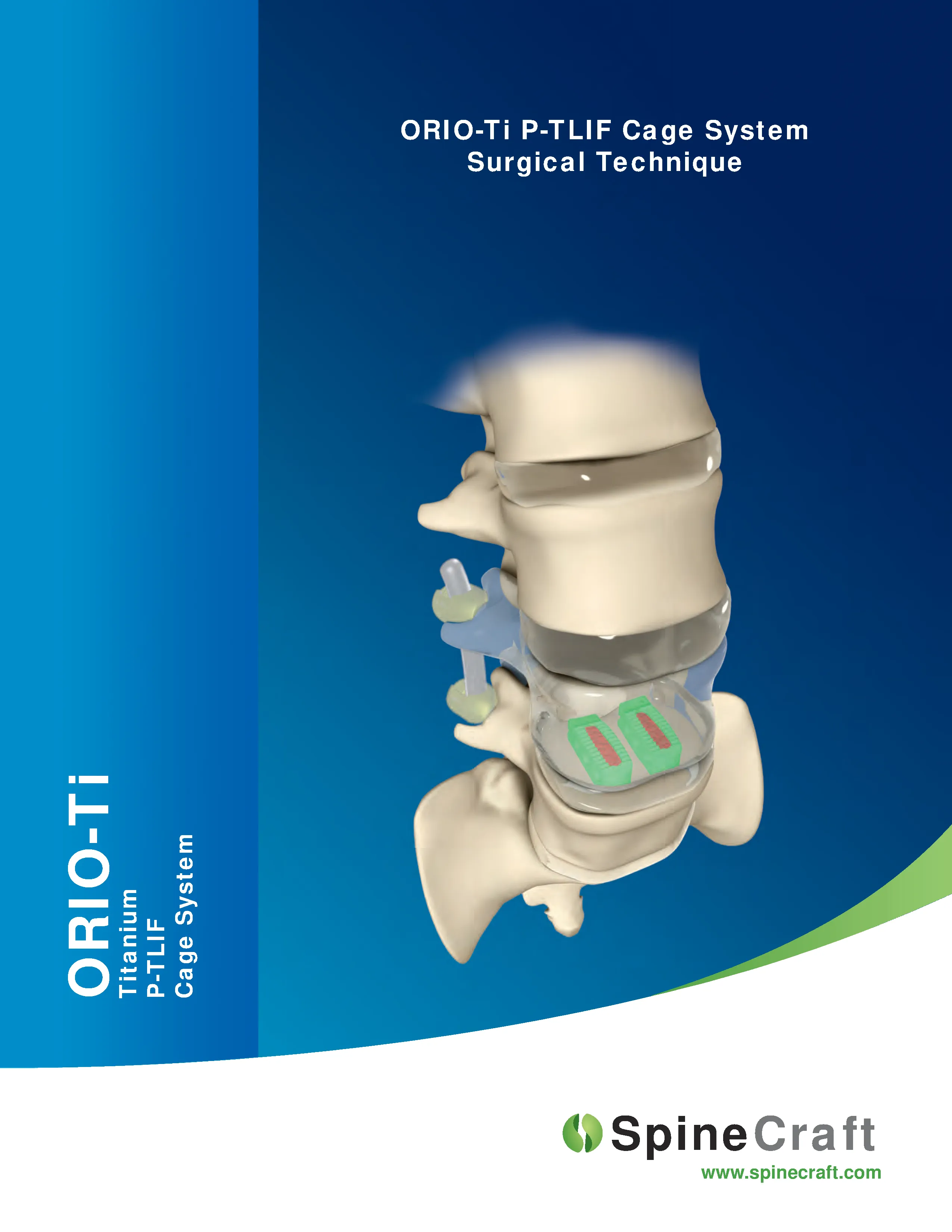 ORIO-Ti P-TLIF by SpineCraft is a trapezoidal titanium lumbar interbody spacer designed for PLIF and TLIF approaches, and allows for mono-portal PLIF and STAC techniques. The cage is made from a titanium alloy with fully anodized surfaces, to increase blood clot retention, nano-roughness, and osseointegration. The shape is anatomically designed with macro and micro texturing to minimize subsidence and promote osseointegration, as well as a large graft cavity for optimum intervertebral ossification.