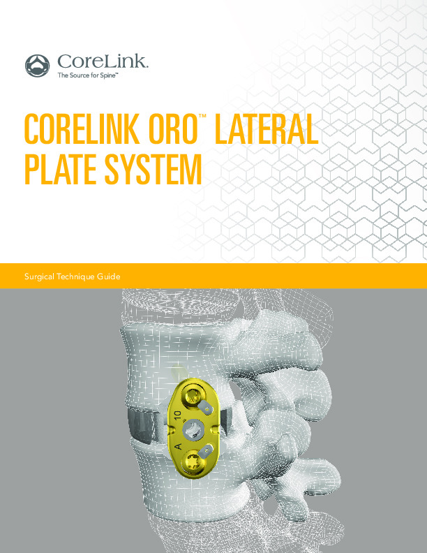The ORO lateral Plate fixation is designed for use in the direct lateral approach and affixes directly to the F3D lateral and the CL5 interbody spacer. Comes as 2 or 4 hole options.