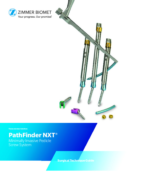 The PathFinder NXT was originally produced by Zimmer-Biomet now with Highridge Medical is a MIS Percutanous Pedicle screw fixation system. IT features a cannulated polyaxial screw head with reduction towers that affix to the tulip head.