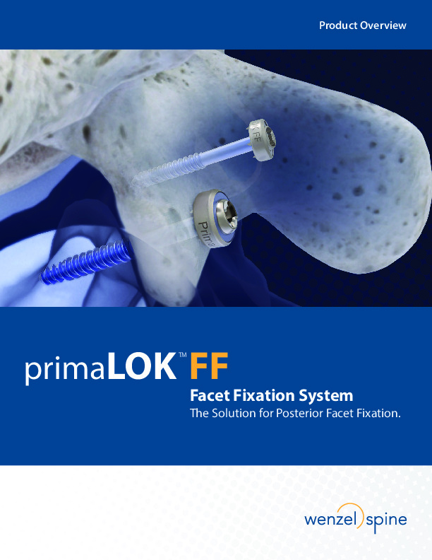 the primaLOK FF is a minimally invasive option for posterior fixation of the lumbar spine via facet joint fixation. The screw comes with optional compression washer. The primaLOK FF can be placed percutaneously through a 1cm incision.