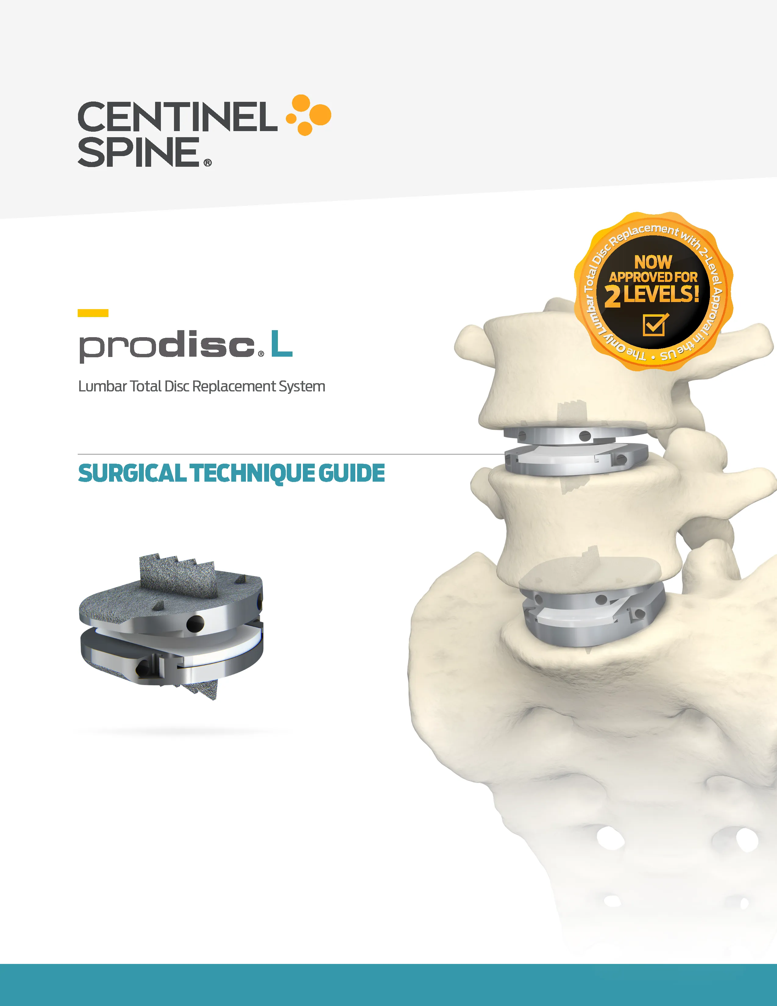 The Prodisc L Lumbar disc arthroplasty by Centinel Spine is an anterior lumbar disc replacement with a central keel. The disc has 12 different anatomical combinations to optimize patient anatomy. The endplates are composed of CoCrMo (Cobalt-28Chrome-6Molybdenum) with plasma sprayed titanium coating. The inlay is UHMWPE (ultra high molecular weight polyethylene.