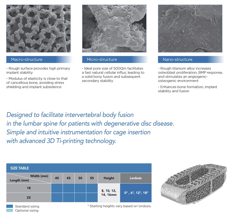 The Pyxis Lateral/Oblique Implant by GS Medical is a 3D printed porous titanium Spacer for use in the direct lateral or oblique retroperitoneal approach to the lumbar spine.