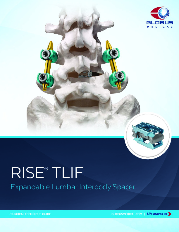 The RISE TLIF is an expandable titanium interbody spacer for use in the TLIF or PLIF procedure. IT comes in several footprint options and lordosis options. It features a 3D printed titanium endplates for improved bony ingrowth.