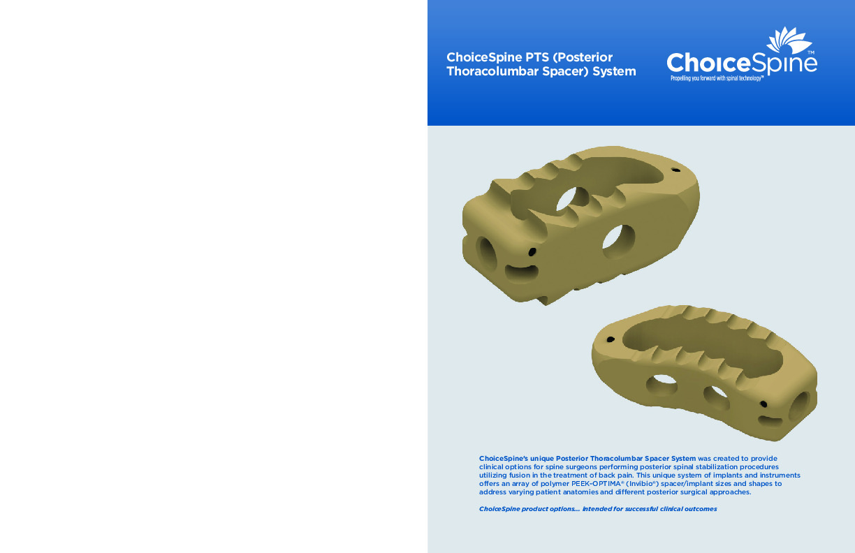 Sabre posterior lumbar interbody spacer by ChoiceSpine is made from PEEK-OPTIMA polymer with a specific size and shape that allows for use in both PLIF and TLIF procedures. Supplemental fixation required.