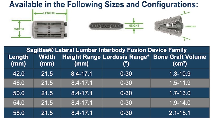 The Sagittae Adjustable Expandable Interbody by ADCURA Spine (Formerly SpineEX) is a lateral lumbar interbody spacer for use in a single or two level disc disease of the lumbar spine between L2 and S1. The Titanium device is made with two drive shafts to independently adjust the height of the anterior and posterior heights and thereby height and lordosis.