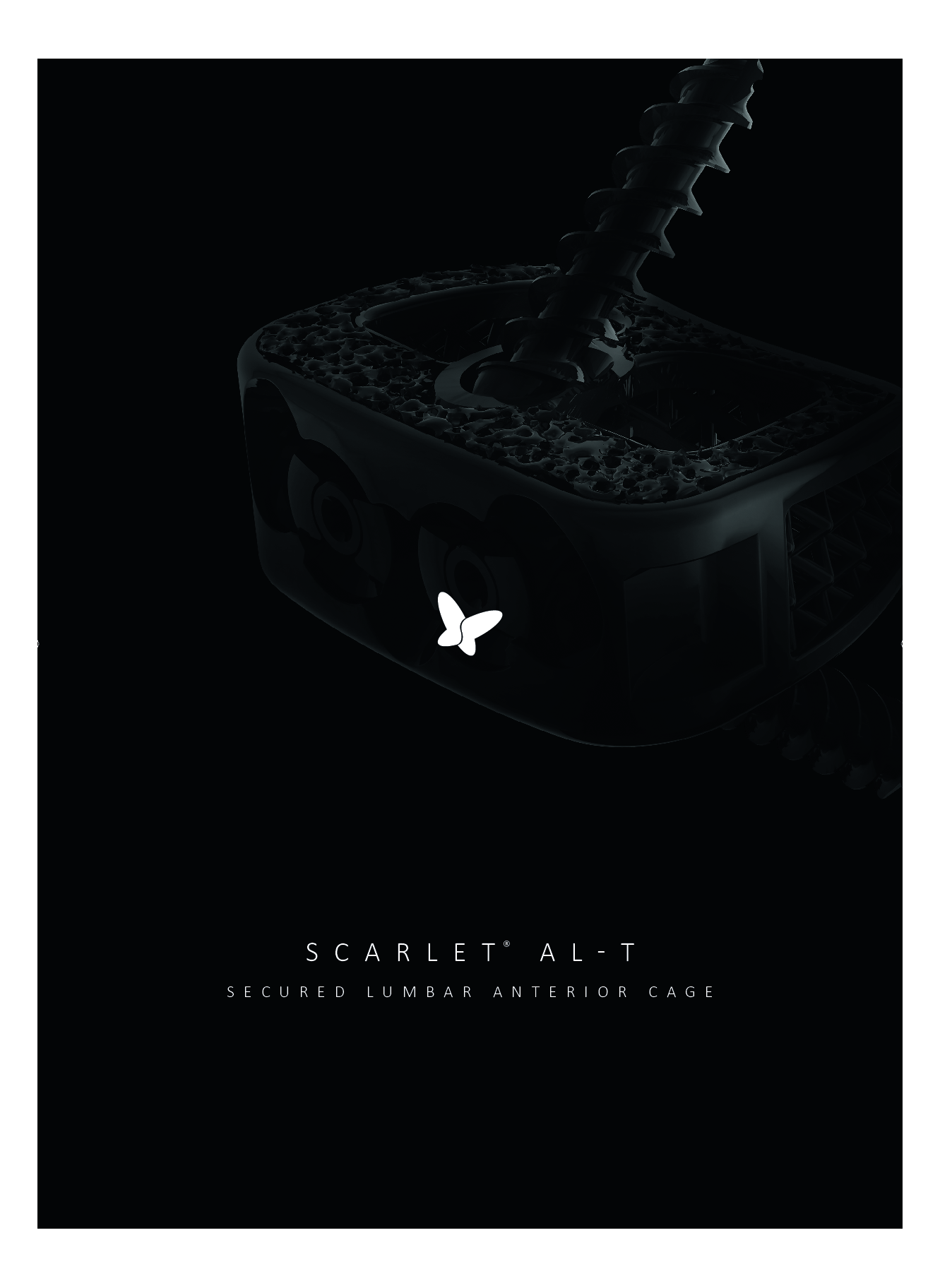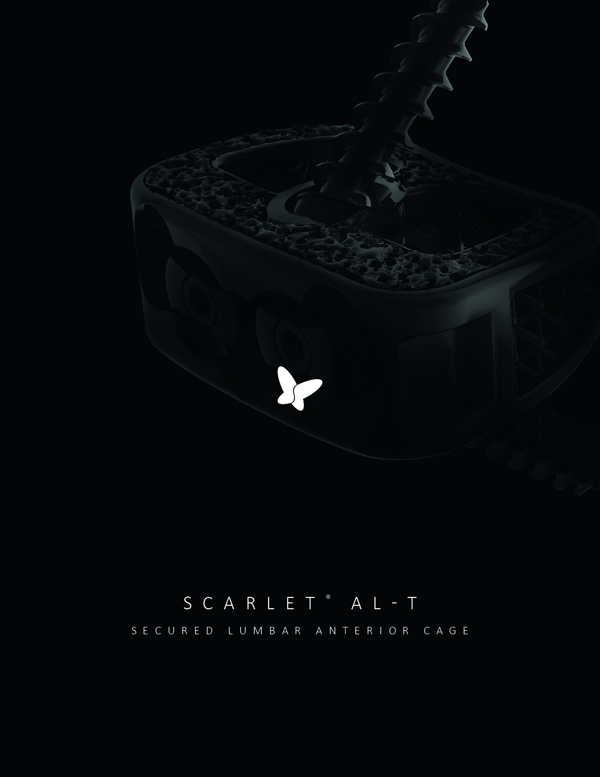 The Scarlet AL-T by Spineart is a 3D printed titanium zero-profile standalone ALIF spacer for use in the anterior lumbar interbody procedure. It features rotating locking screw cam to prevent backout and a porous internal architecture for bony ingrowth.