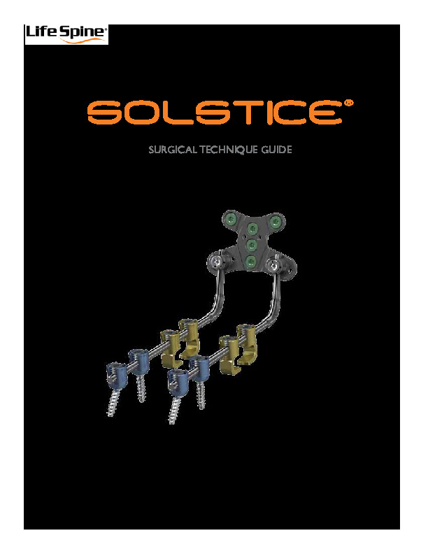 The SOLSTICE OCT is an Occipital-cervical-thoracic fixation system by Life Spine that features high angle. (90 degree) polyaxial heads for optimal rod capture. The Occipital plate features up to 5 points of fixation. Comes with complete set of pre-bent rods, connectors and Partial threaded screws for C1 fixation.