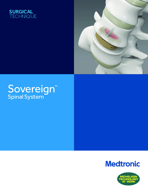 The Sovereign PEEK ALIF standalone spacer by Medtronic is intended for use in the anterior and oblique lumbar approach. It is a standalone spacer with 3 integrated screws for fixation. Available in lordotic and hyper-lordotic spacers.