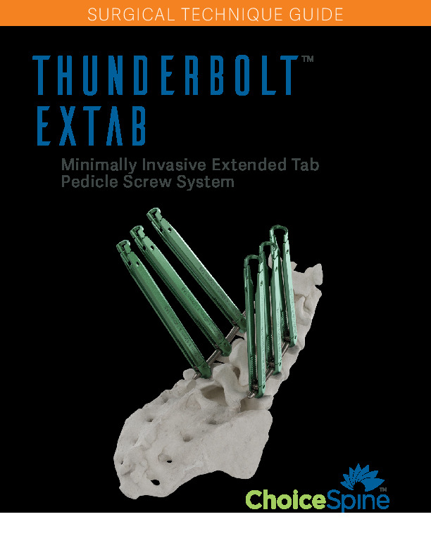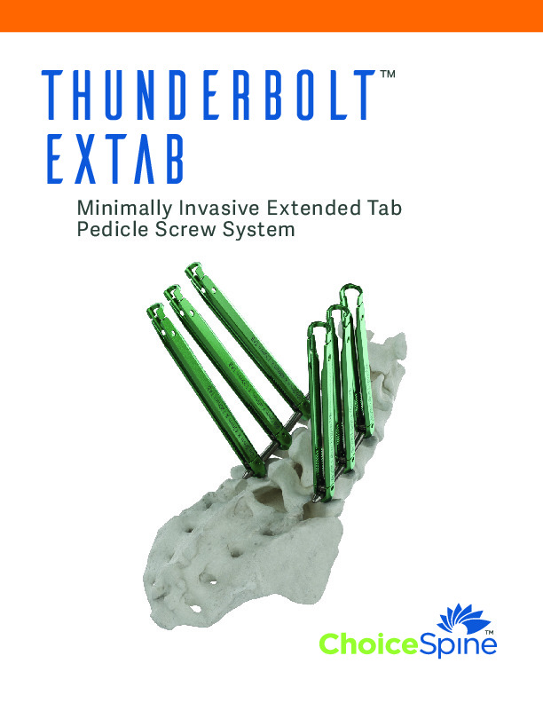 The THUNDERBOLT EXTAB by Choice Spine is a Minimally Invasive Extended Tab Pedicle Screw System that features a cannulated screw with extended tabs for percutaneous screw implant. EXTAB features 25mm of internal threaded reduction.