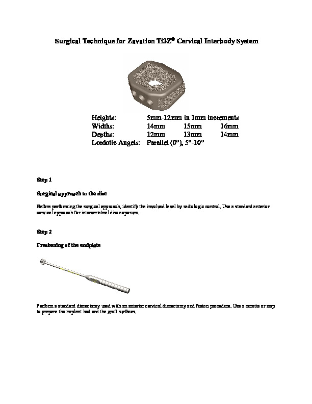 The Ti3Z Cervical ACDF spacer by Zavation is a 3D printed titanium spacer with an open porous architecture and a large central window for graft.