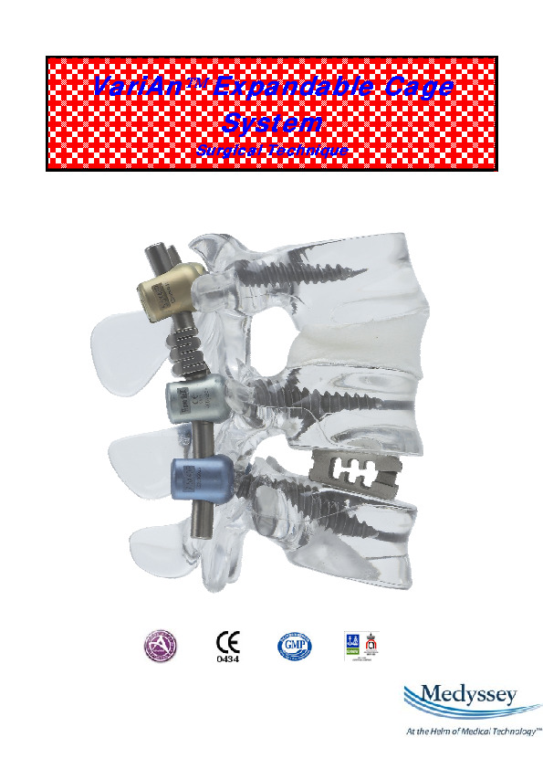 VARIAN Expandable Cage by Medyssey is an expandable interbody spacer made of titanium alloy designed for posterior lumbar interbody fusion. The expansion of the anterior aspect of the cage lifts the front edge up 2.0-2.5 mm, offering 8 and 10 degree lordotic angles once expanded. Available in multiple heights and lengths. The inferior and superior surfaces have a grooved surface that resists migration and a large central graft window to promote bony integration.